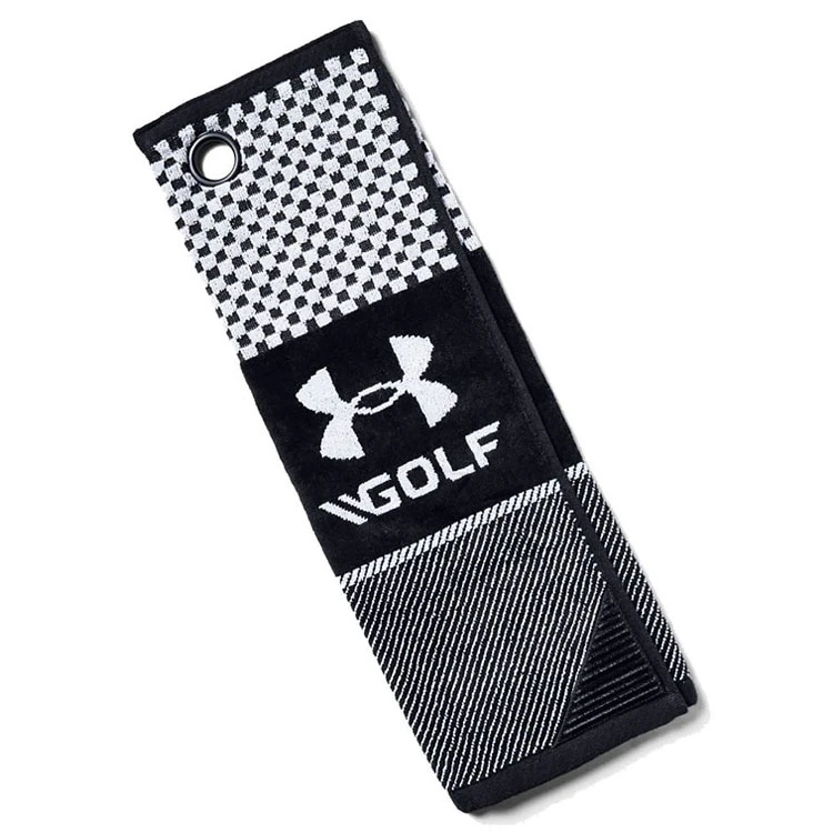 | Under Armour Medium Golf Towel Tri-Fold Size With Textured Cleaning Section The Under Armour Medium Towel is built to do it all, designed with a plush section for water absorption or polishing, a textured section for cleaning loose dirt or mud and scrubbing patches for the tougher dried-on dirt. – 100% cotton – Metal loop ring for easy connection to bag – Textured section for cleaning dirt – 20.5″ x 6.7″ |